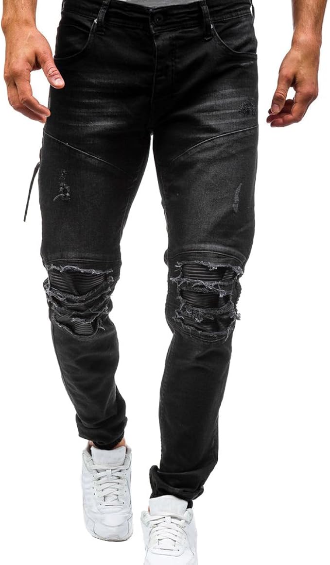 LIYT Men's Knee Patch Ripped Hole Jeans biker patch denim
