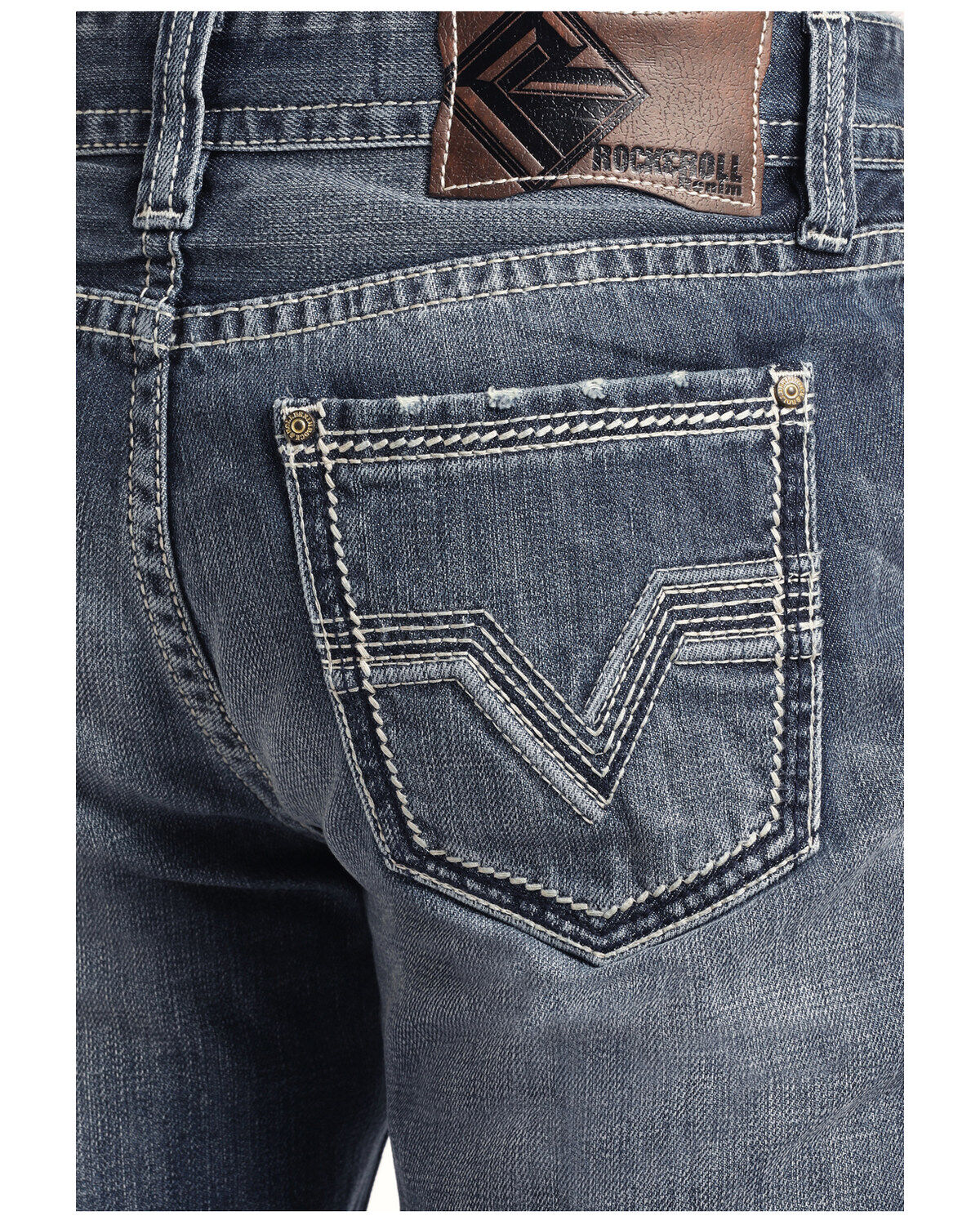 Rock \u0026 Roll Denim Men's Heavy V Stitch blue stitch brand jeans