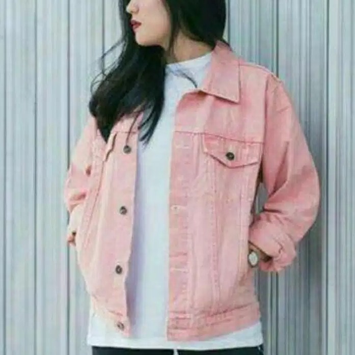 Jual JAKET JEANS UNISEX WARNA PINK jaket denim pink