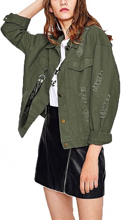 Huiwa Womens Denim Jacket Shoulder denim jacket green womens