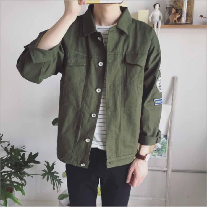 Pria: Jaket Denim Korea Motif Huruf jaket denim korea