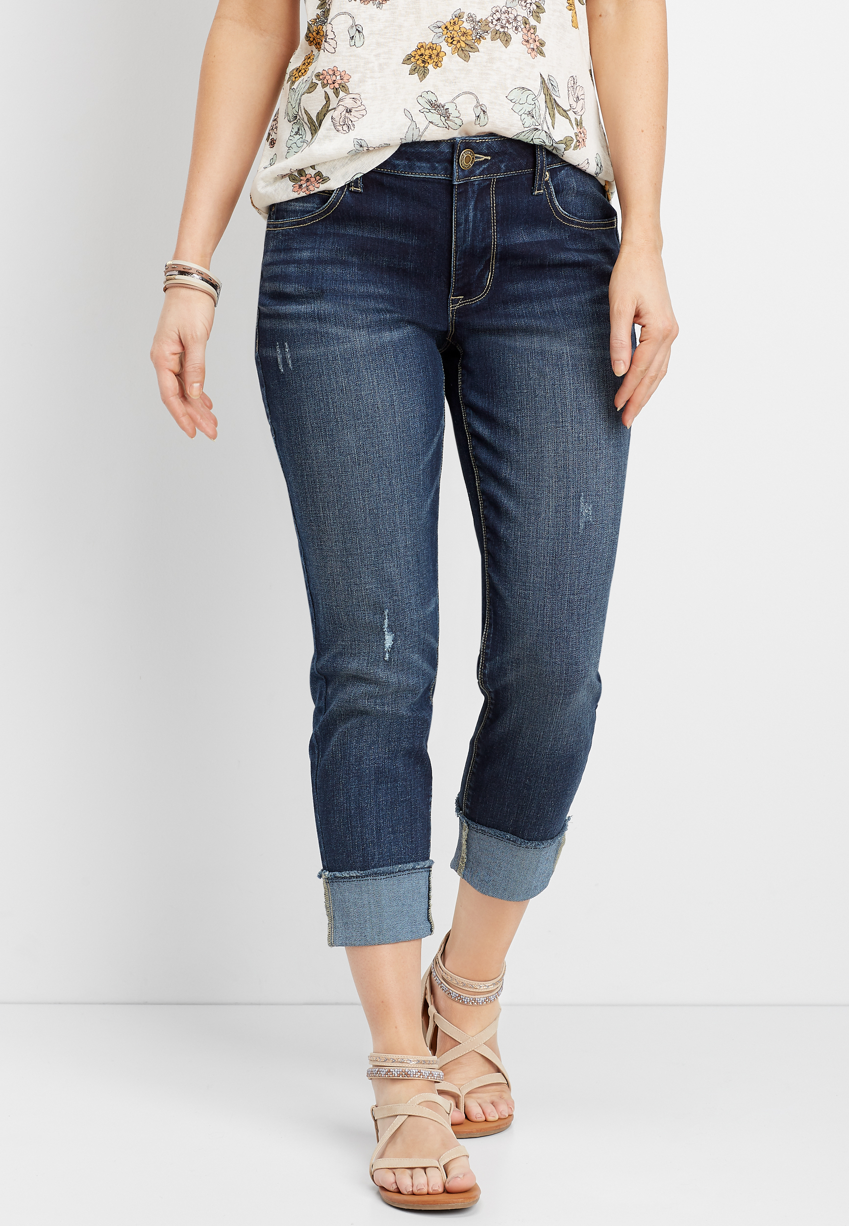 dark wash cuffed cropped boyfriend jean maurices cropped jeans