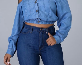 Denim crop top | Etsy women's denim crop top