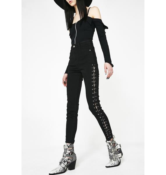 Black Denim Lace Up Sides Skinny Jeans