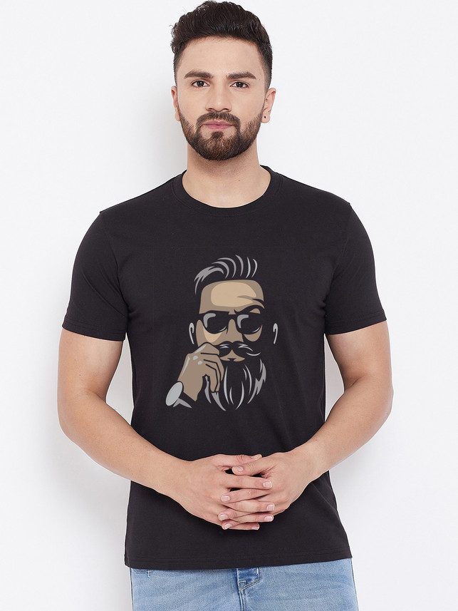 Wesquare Printed Men Round Neck Black T moustache jeans flipkart