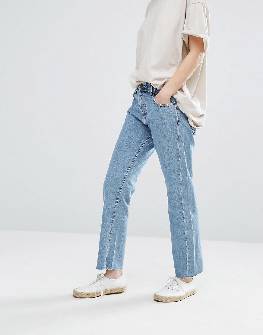 Straight Leg Jeans With Raw Hem in Blue current elliott original straight