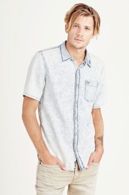 SHORT SLEEVE BUTTON UP WOVEN MENS SHIRT true religion button up shirts