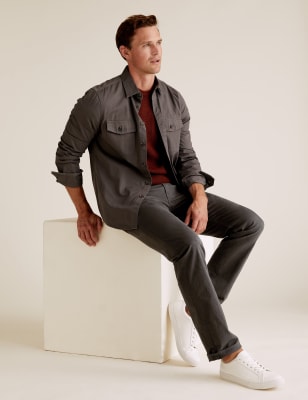 Straight Fit 5 Pocket Stretch Trousers straight pocket trousers