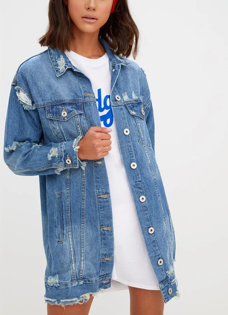 Women autumn Hole Distressed Denim girls distressed denim jacket