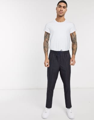 boohooMAN Pinstripe Cropped Trousers In new look slim fit cropped trousers in grey pinstripe