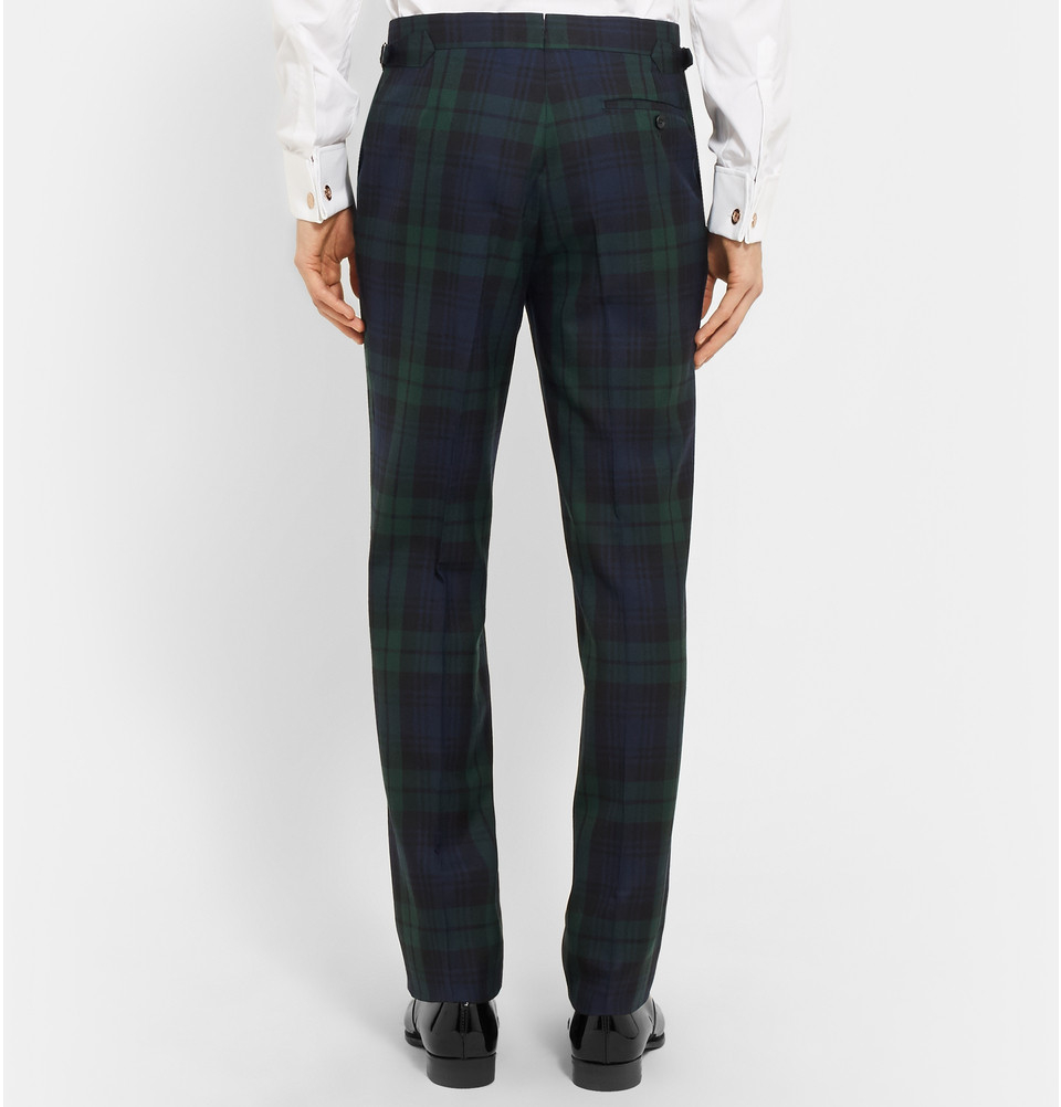 black watch tartan wool trousers