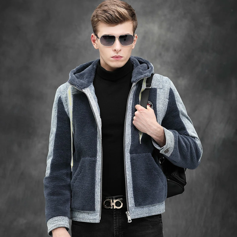 Real Fur Coat Men Autumn Winter Sheep sheep wool jean jacket