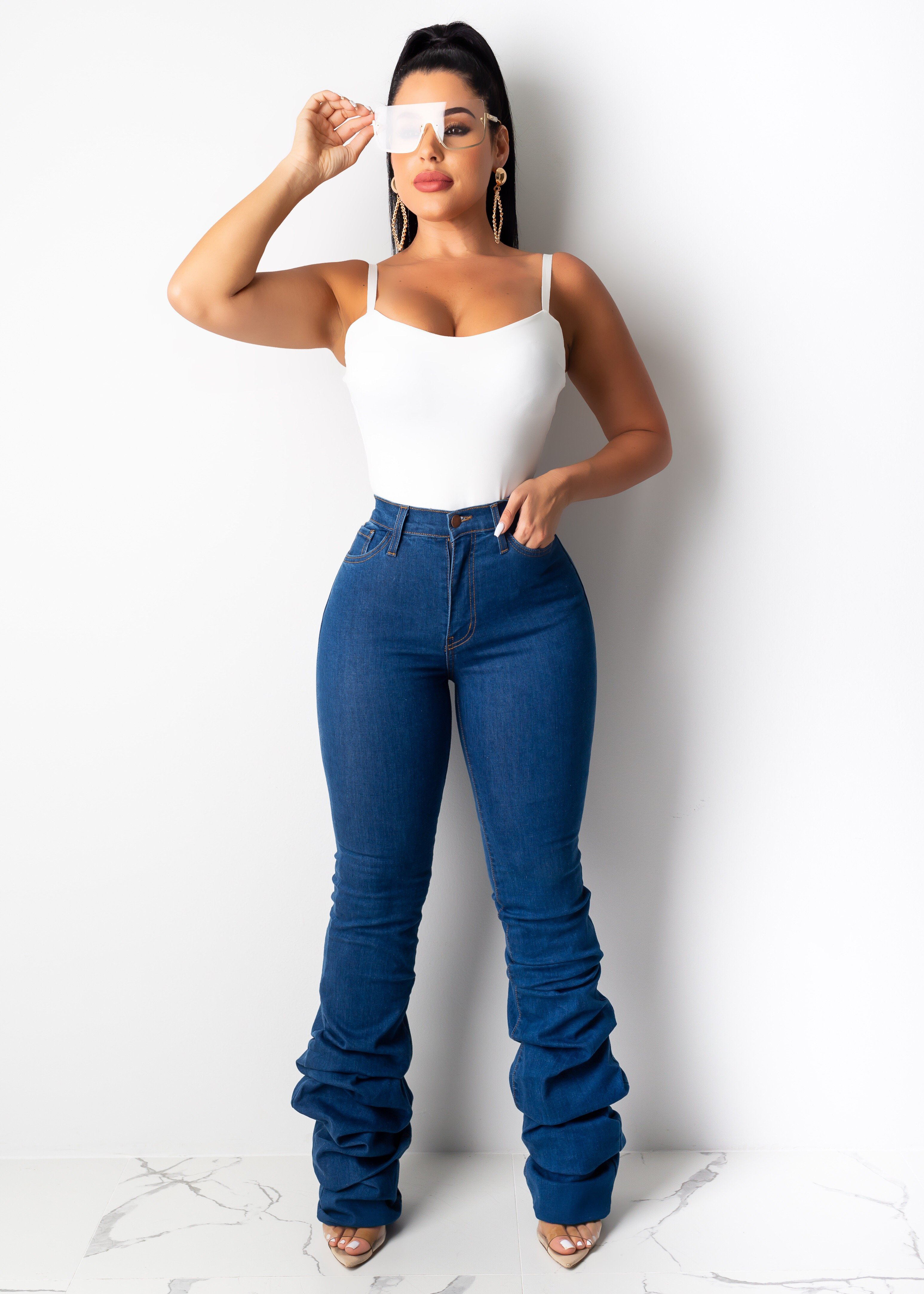 girl in tight high waisted jeans