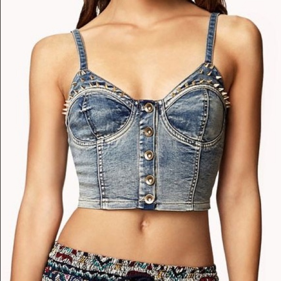 Tops | Studded Denim Bustier Top | Poshmark denim bustier top forever 21