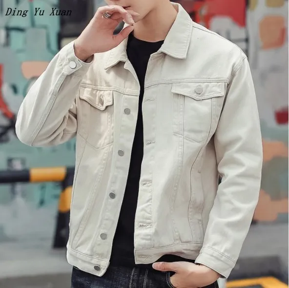 Mens Hip Hop Denim Jacket Men Casual beige denim jacket outfit