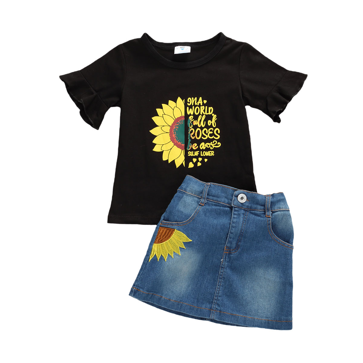 Fashion Denim Mini Skirt Two Piece Set denim mini skirt for baby girl
