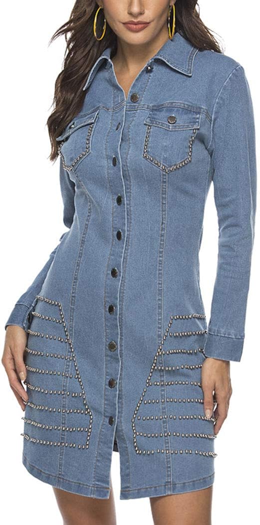 NONOSIZE Women's 3/4 Sleeve Button Down amazon prime denim dresses