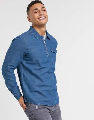 Burton Menswear half zip denim shirt | ASOS zip denim shirt
