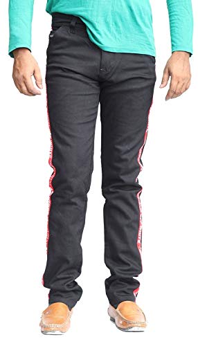 Marcsman mid rise regular fit denim black jeans side patti