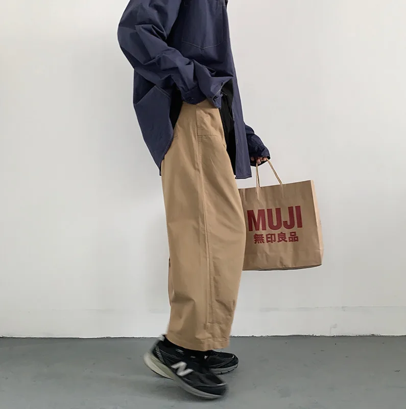 Casual Straight Pants Khaki / Army muji wide leg jeans