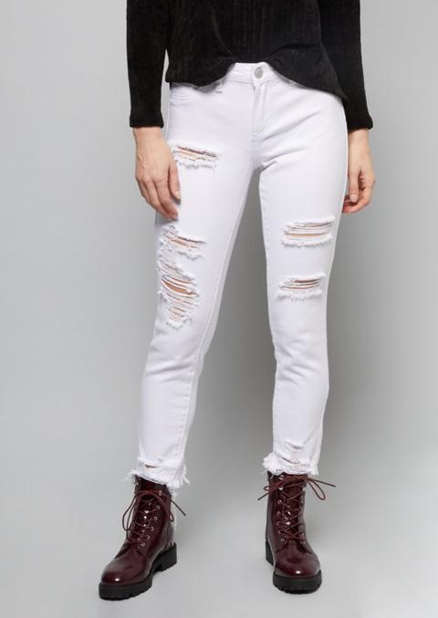 Ymi White Raw Hem Mid Rise Ankle Jeans ymi white jeans