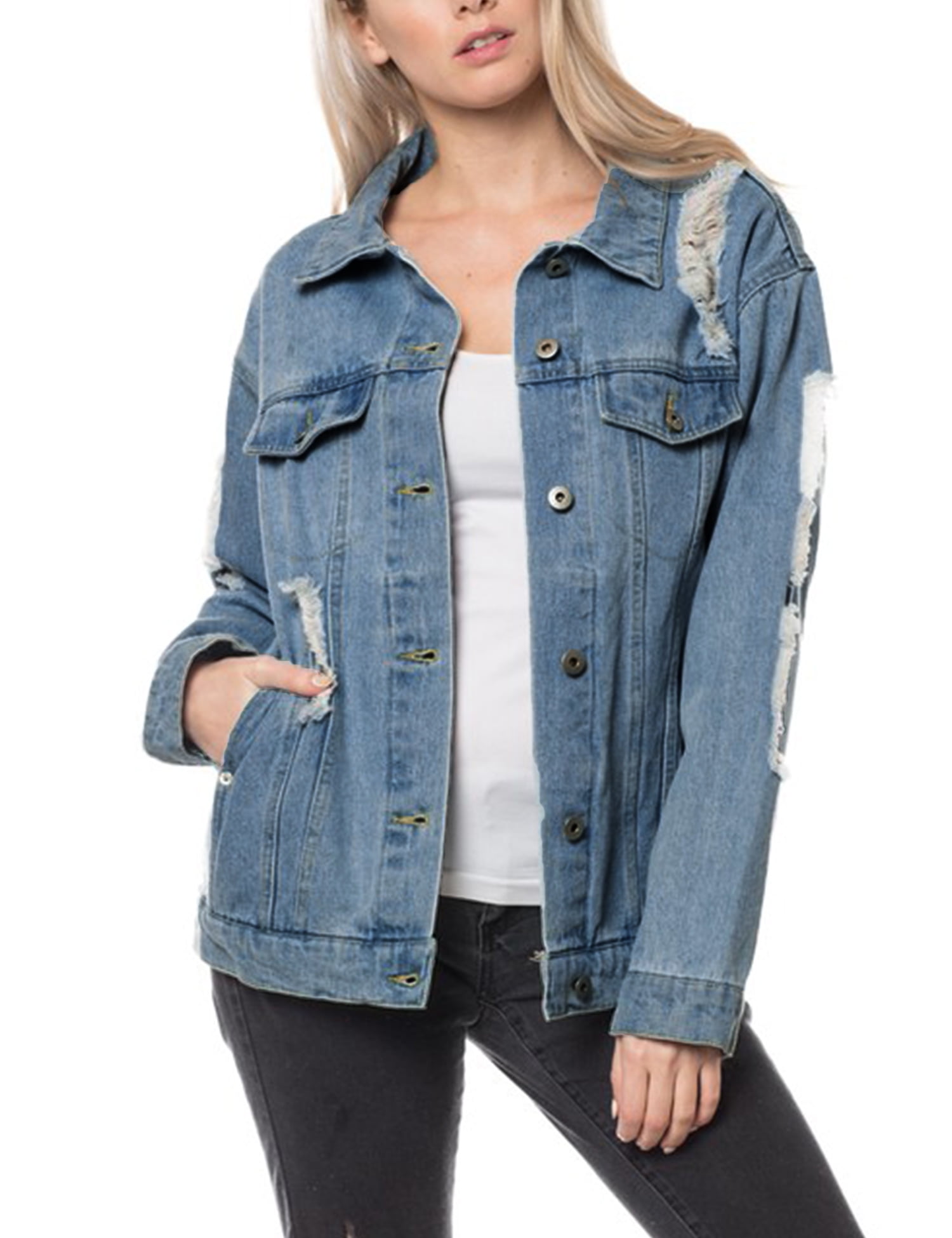 ladies distressed denim jacket