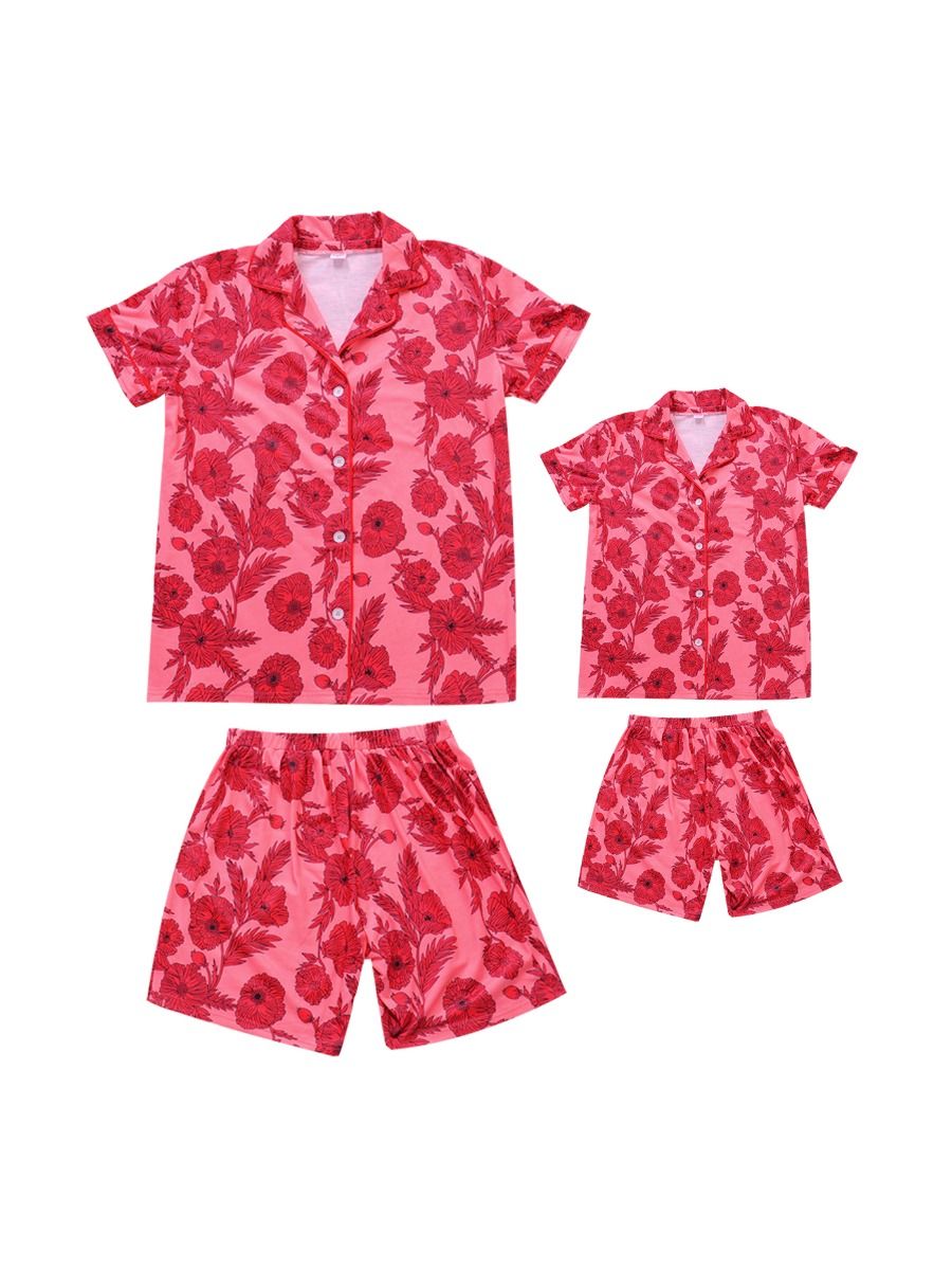 Me Red Flower Leisure Wear Outfit mommy and me shorts