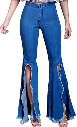 Bell Bottom Split Jeans Stretchy Comfy