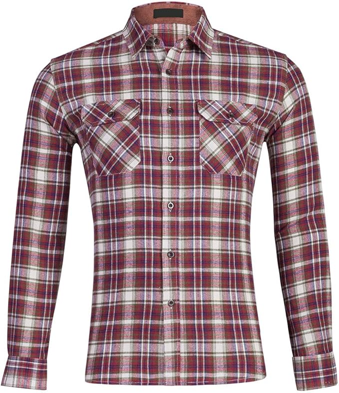 TOSKIP Mens Plaid Flannel Shirts-Long slim flannel shirt mens