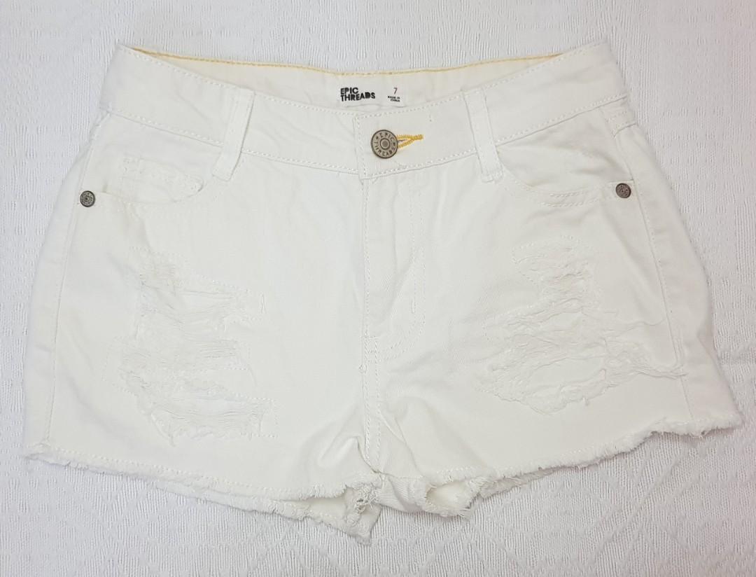 Girls White Denim Tattered Shorts girls white overall shorts