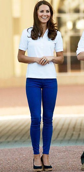 Shop colours, katemiddleton, jeans white polo and blue jeans