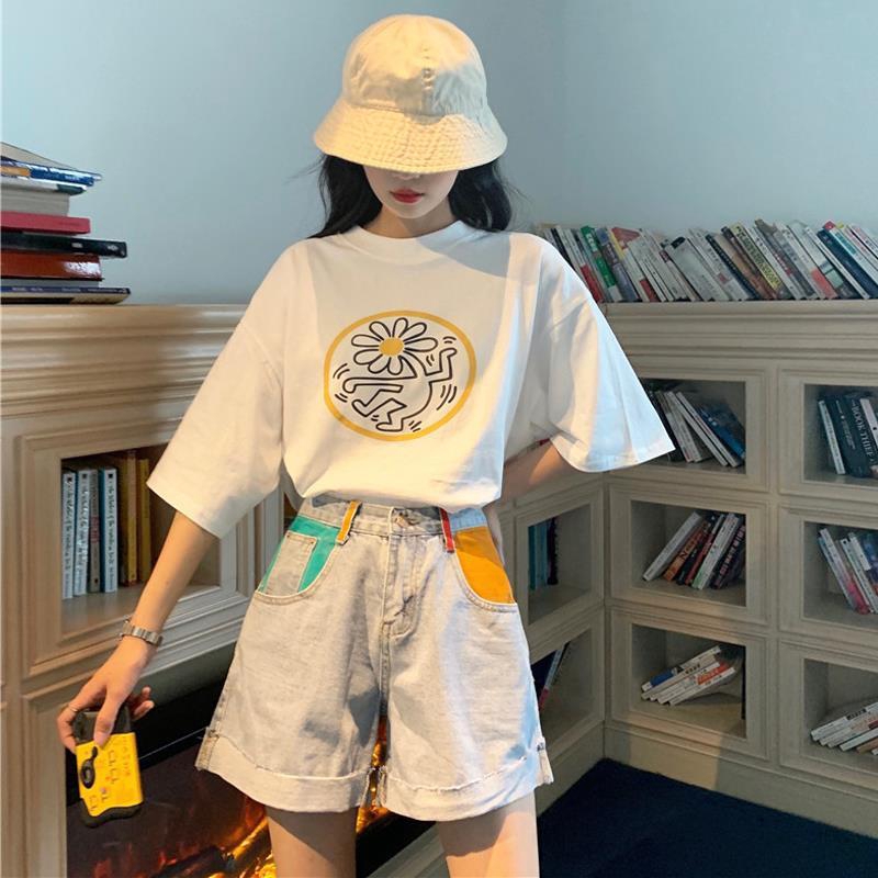 Women's Short Sleeve White T-Shirt and white denim short sleeve shirt