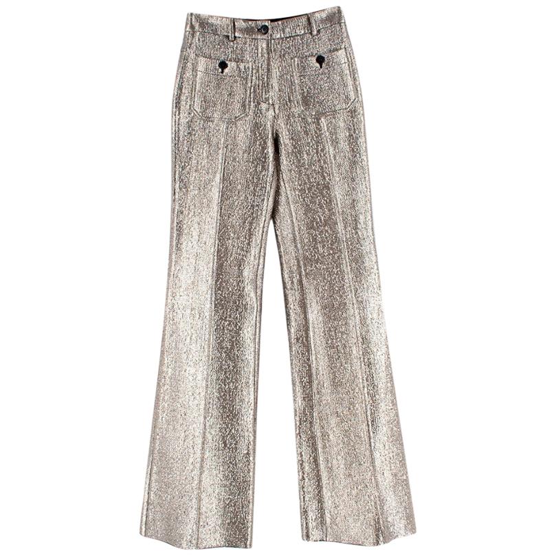 Roberto Cavalli Pale Gold Metallic High pale blue high waisted belted trousers