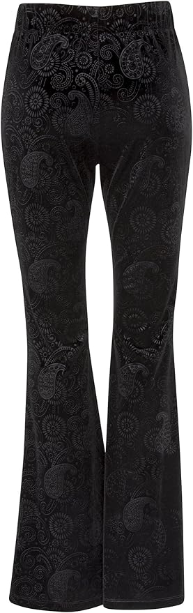 Womens Black Burnout Velvet Satin Lace satin bell bottom pants