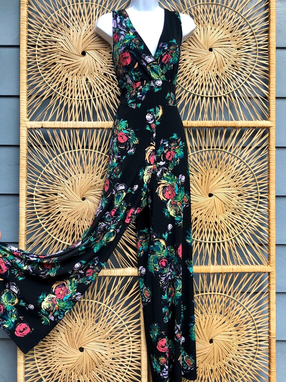 Vintage black floral print jumpsuit | Etsy black flowy overalls