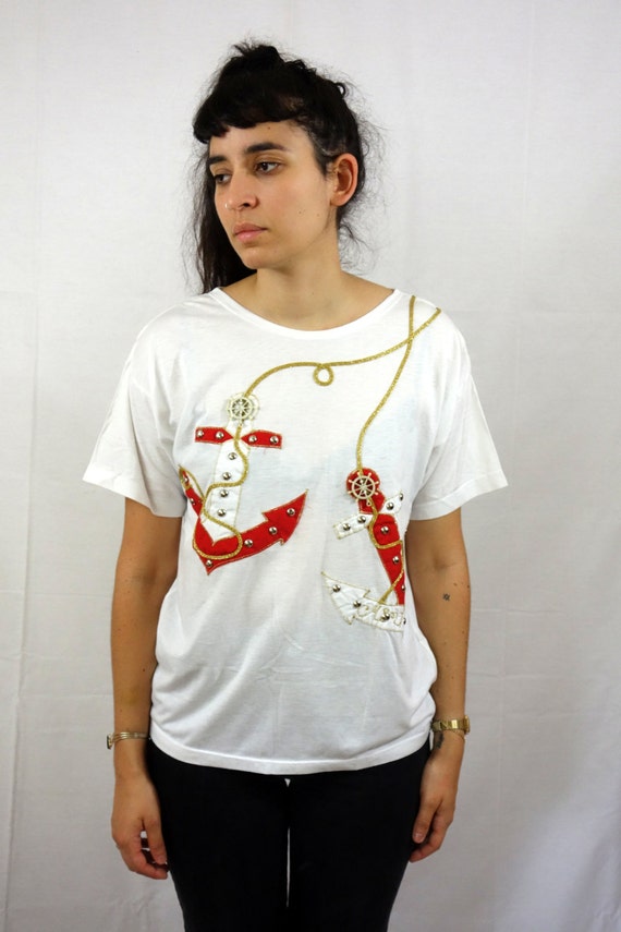 Vintage 80s Anchor White Shirt T shirt 80s white shirt and jeans
