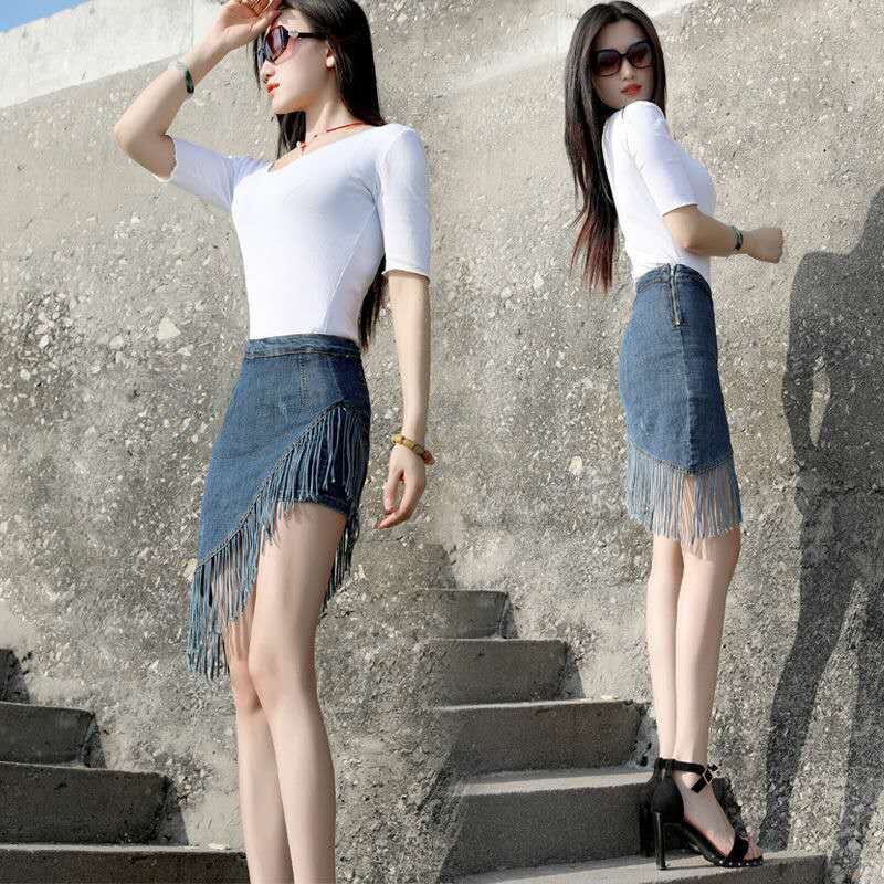 2019 Korean Fashion Women's Top tassel denim skirt style 2019
