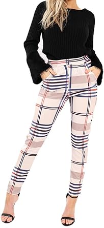 My Mix Trendz Women Ladies Beige High beige tartan pants
