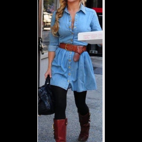 Dresses | Knee Length Denim Dress Free denim dress with knee high boots