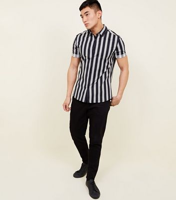 Navy Muscle Fit Stripe Printed Shirt navy muscle fit shirt