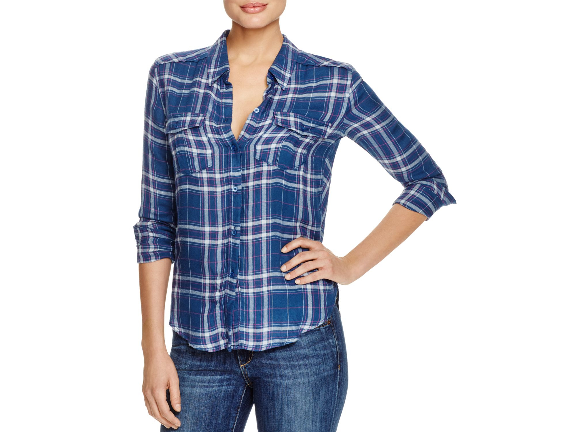 PAIGE Synthetic Denim Plaid Shirt in paige denim tops