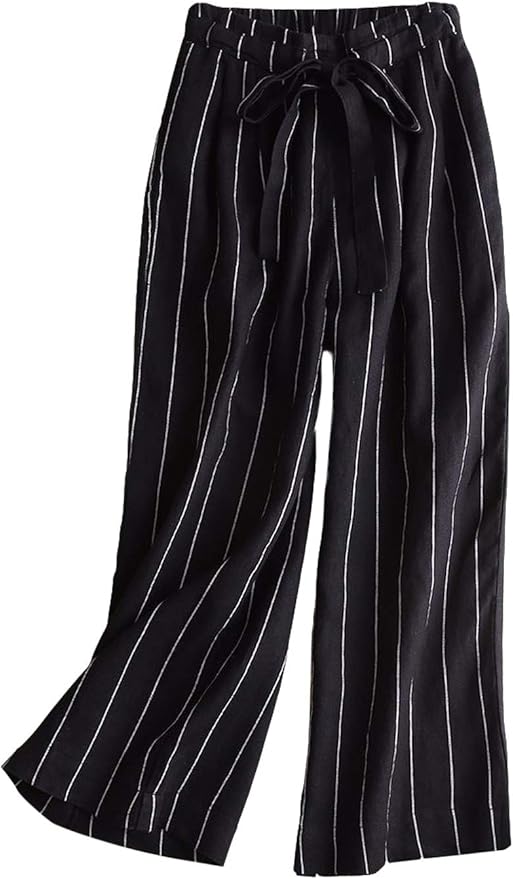 Gihuo Women's Vintage Striped Tie Waist striped tie waist trousers