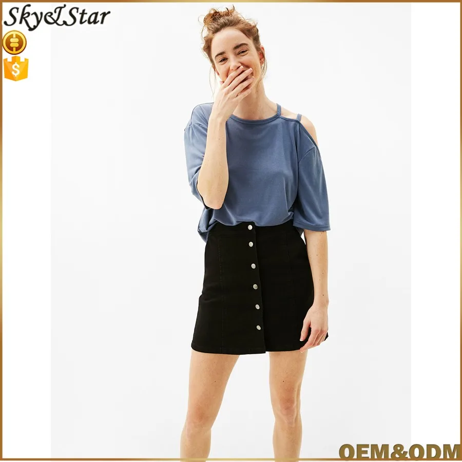 Women Mini A-line Denim Skirt With a line denim skirt button front