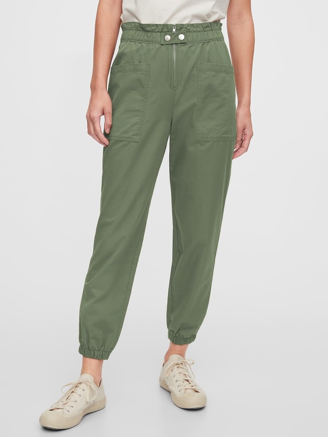 Olive High Rise Cotton Stretch Twill high rise cargo joggers