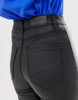 Stradivarius high waist coated jeans in coated black trousers