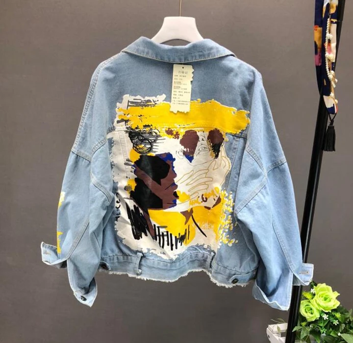 Hand painted Pattern Chic Coat Letters painted white denim jacket