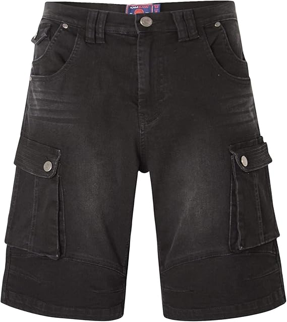 Kam Mens Big Size Stretch Denim Cargo black denim cargo shorts
