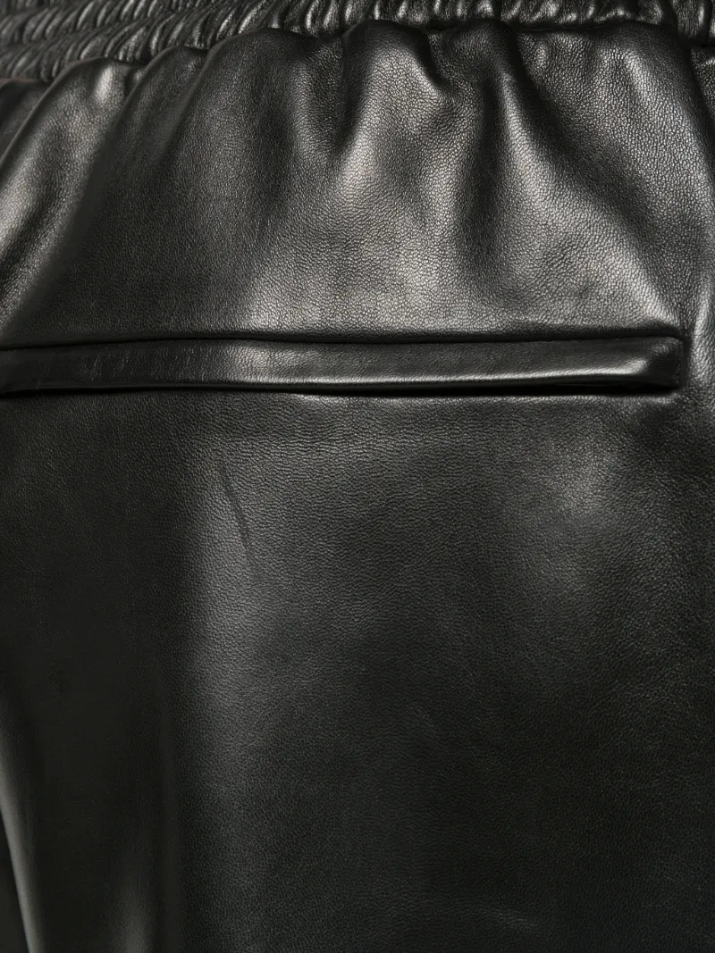 black leather track pants