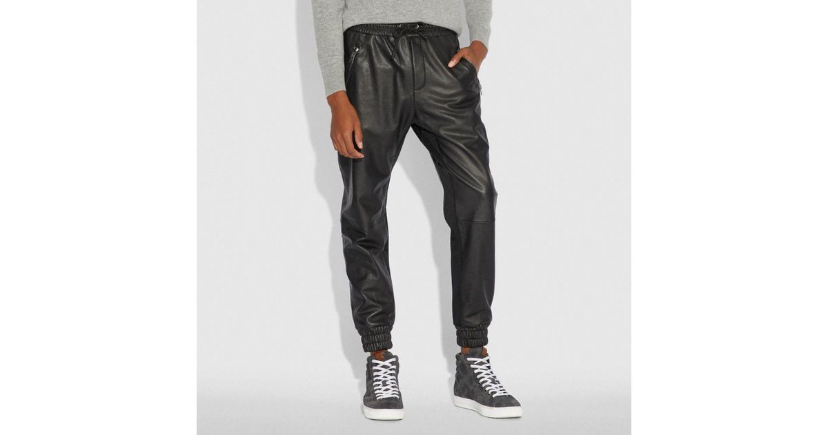 COACH Leather Track Pant in Black for black leather track pants
