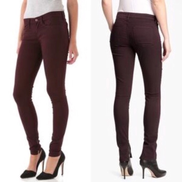 Vince Burgundy Ankle Zip Skinny Jeans burgundy skinny jean
